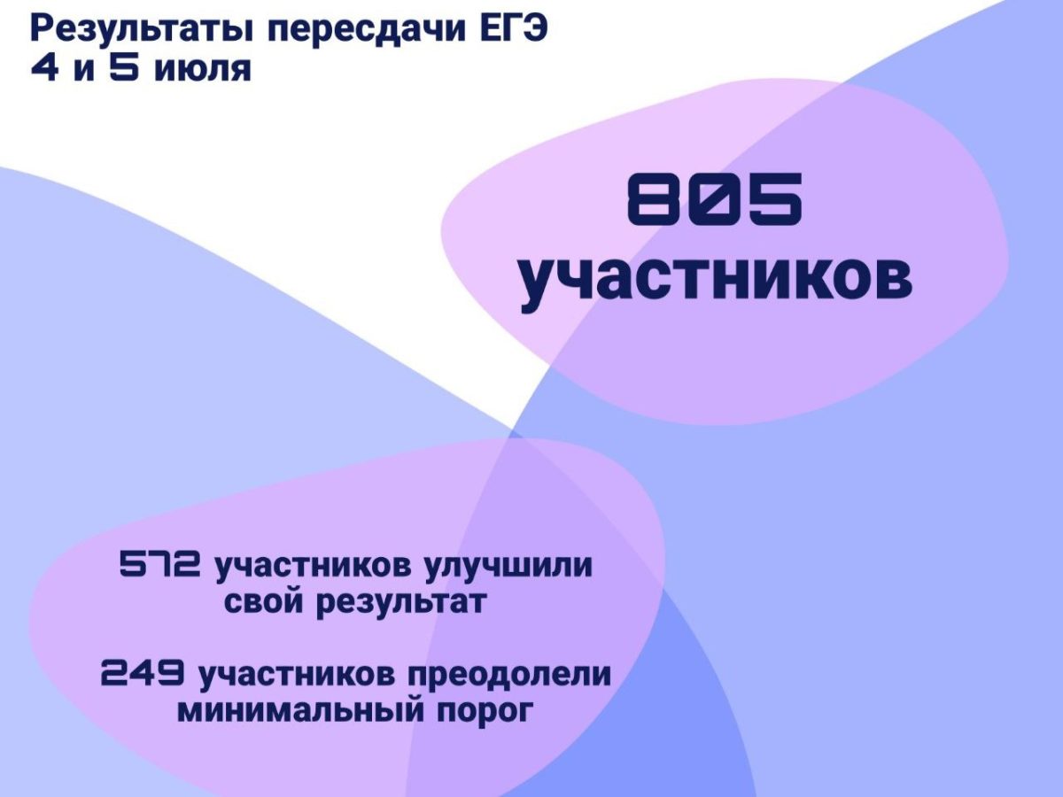 23 июля 2024 г.Результаты пересдачи ЕГЭ в дополнительные дни, которые были организованы 4 и 5 июля, стали известны. Из 805 выпускников, решивших переписать один из экзаменов, 80 % смогли улучшить свой результат. При второй п...