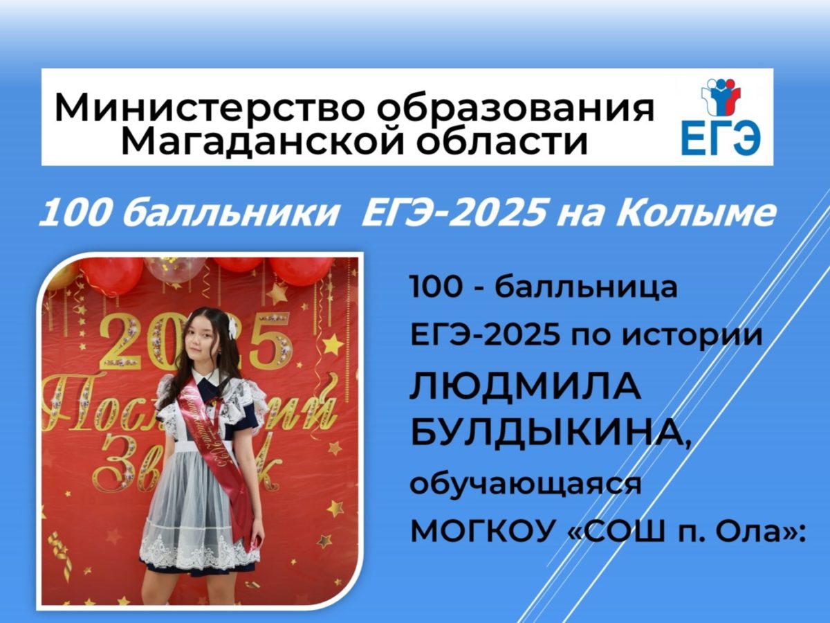 19 июня 2025 г.В Магаданской области стали известны результаты ЕГЭ по истории. Ученица 11 «Б» класса школы пос. Ола Людмила Булдыкина набрала максимальные 100 баллов. Людмила признаётся, что благодаря учителю Анне Лопаевой, она п...