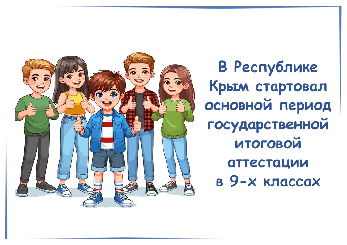 20 мая 2025 г.Сегодня для выпускников 9-х классов Республики Крым начался основной период государственной итоговой аттестации. Государственная итоговая аттестация – важный этап в образовании, который открывает путь к будущей профес...