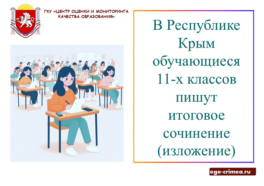 Республика Крым: «Обучающиеся 11-х классов напишут итоговое сочинение (изложение) 4 декабря»