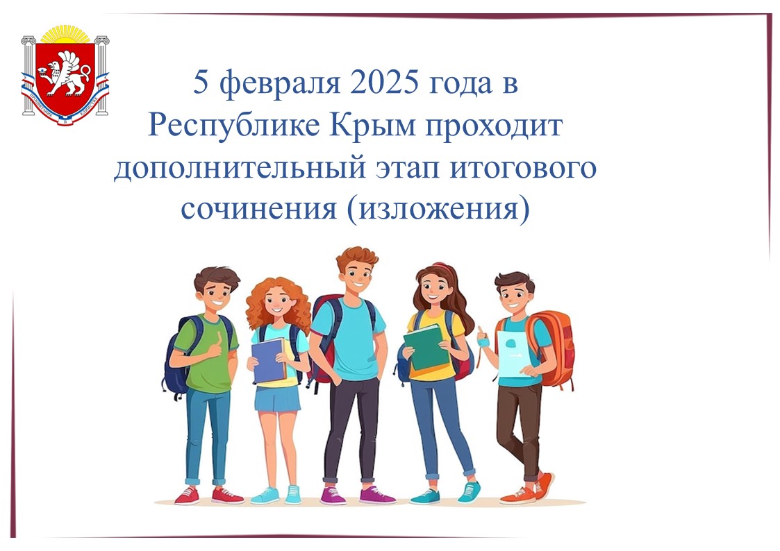 6 февраля 2025 г.Одиннадцатиклассники Республики Крым принимали участие в написании итогового сочинения (изложения) в основном этапе – 4 декабря 2024 года, из них более 97,6 % получили «зачёт». 5 февраля 2025 года в Республике...