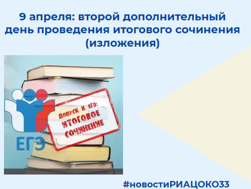 9 апреля 2025 г.9 апреля 2025 года, во вторую дополнительную дату, состоится проведение итогового сочинения (изложения) во Владимирской области,  ...